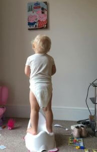 As the months rolled by Ayla began to tell us each time she’d weed and also developed a want for privacy when doing number two’s. She would begin by running around with a slightly panicked/manic look and shout ‘a poo, it’s a poo!’ Avoiding eye contact and shouting ‘NO, NOT LOOK AYLA’ with her palms raised, she’d then take herself out of sight. The odd grunt would follow and she’d emerge red faced and looking relived but would adamantly deny that she had a full nappy.
